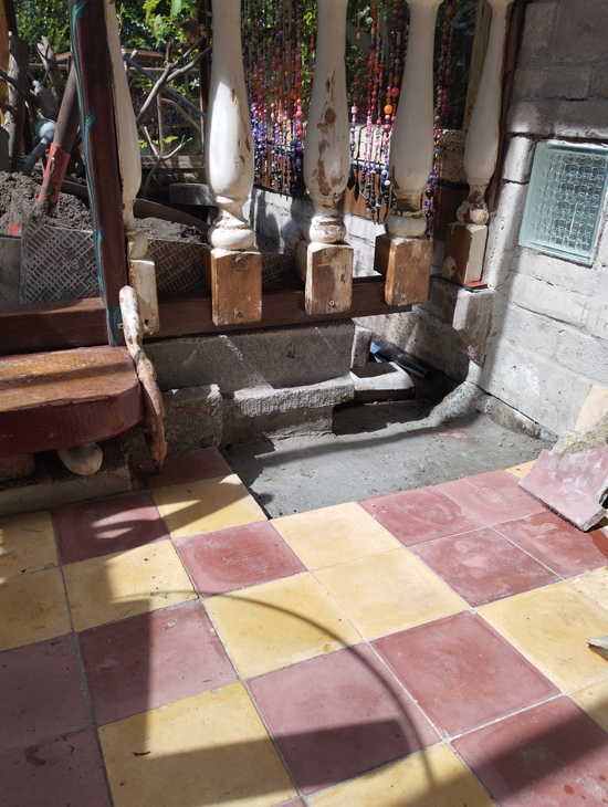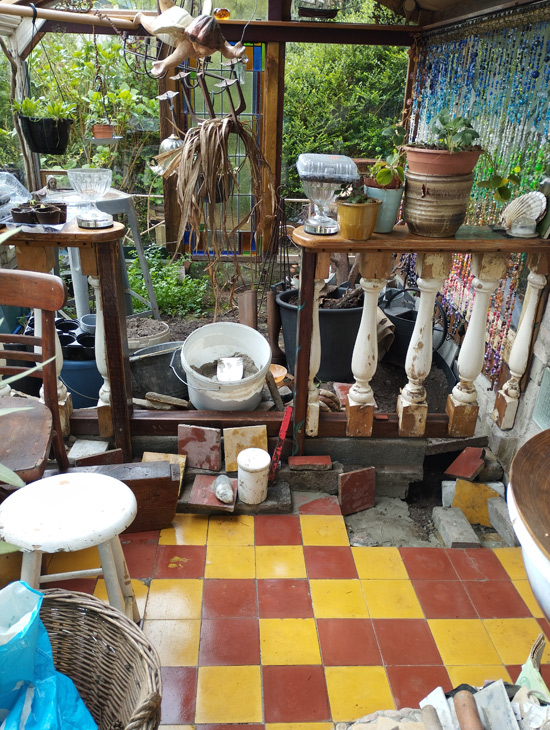 De tegels zijn gelegd met het principe dat er horizontaal of verticaal geen 3 dezelfde kleur op een rij mag zijn, en geen enkele rij hetzelfde mag zijn.